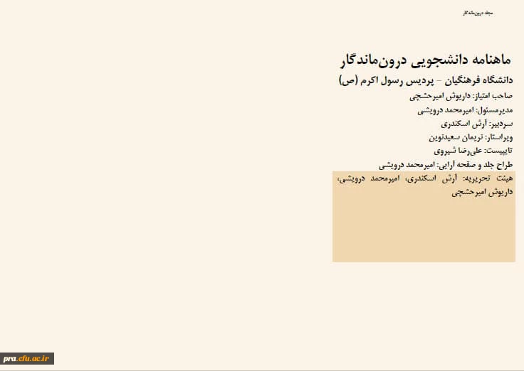 اولین شماره ی نشریه ی دانشجویی  «درون ماندگار/ در امتداد گشودگی» منتشر شد. 2