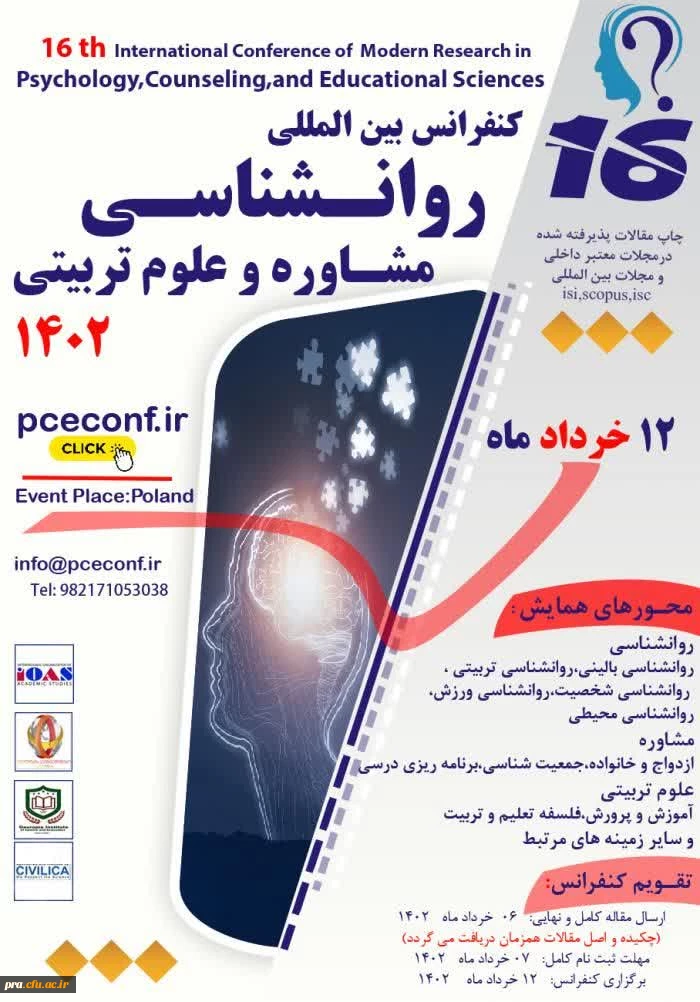امتیاز دهید : پذیرش نهایی 15 مقاله در 16 همایش بین المللی روانشناسی ، مشاوره وعلوم تربیتی 2 سهشنبه 9 خرداد 1402 ساعت 17:33