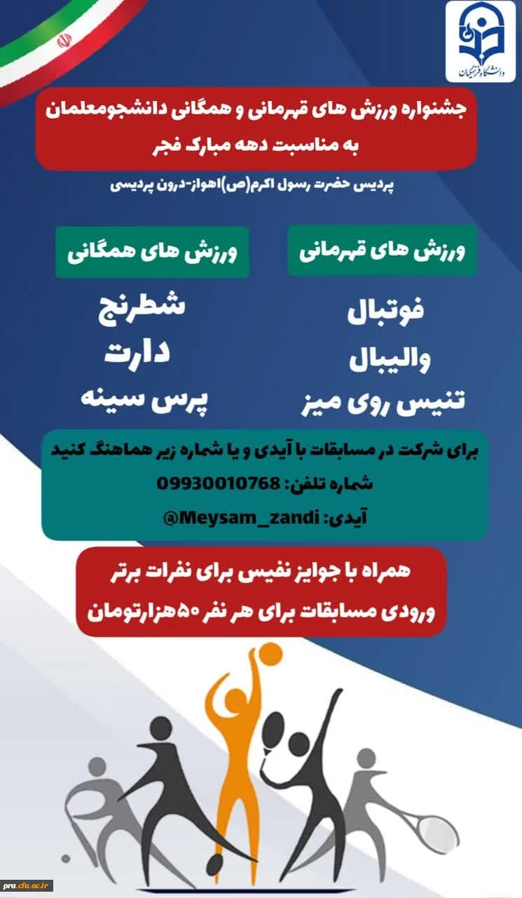 امتیاز دهید : جشنواره ورزش های قهرمانی و همگانی دانشجو معلمان به مناسبت دهه مبارک فجر 2 چهارشنبه 2 اسفند 1402 ساعت 8:14