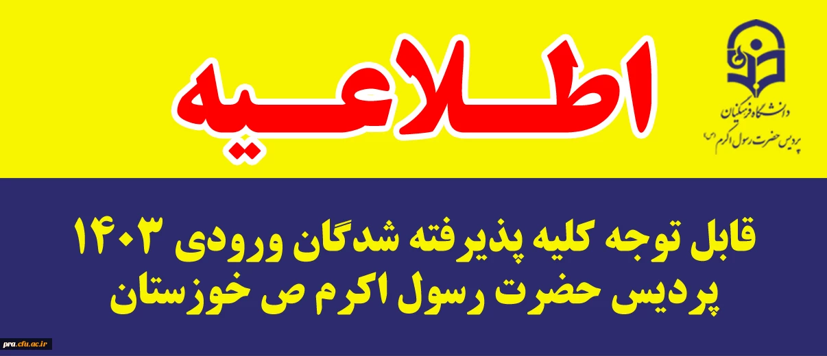 امتیاز دهید : قابل توجه کلیه پذیرفته شدگان ورودی 1403 پردیس حضرت رسول اکرم ص خوزستان 2 جمعه 13 مهر 1403 ساعت 13:34