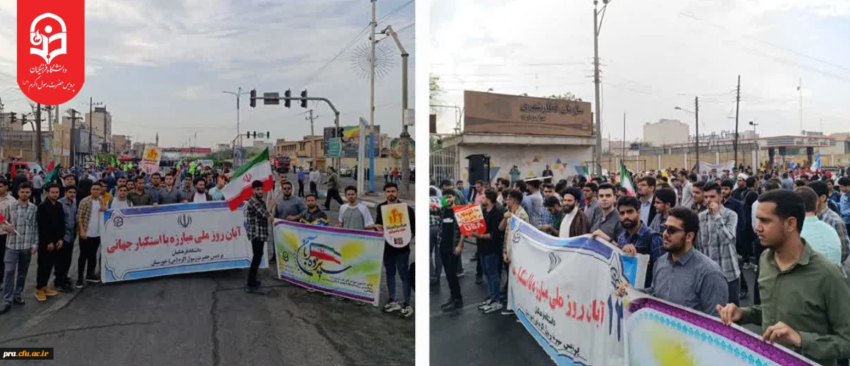 حضور پرشور دانشجومعلمان،اساتید و کارکنان پردیس رسول اکرم (ص) اهواز در راهپیمایی یوم الله 13 آبان 1403 2